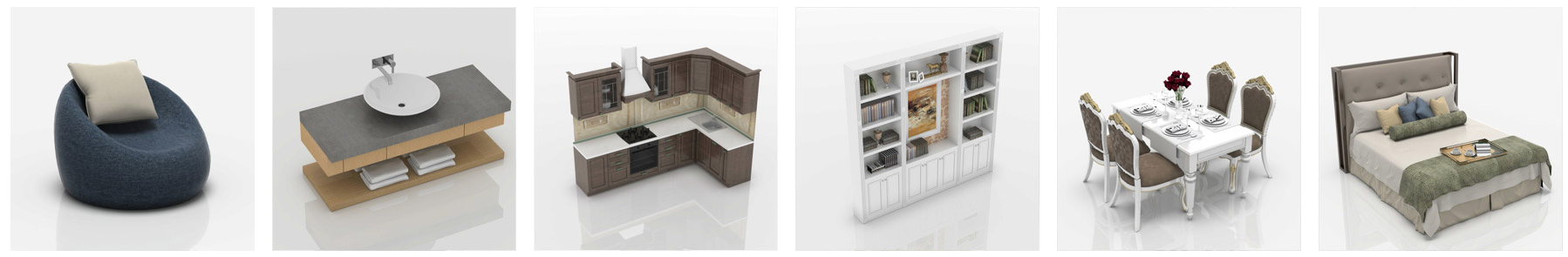 數萬套樣板間,海量真實3D模型,沙發、桌椅、門窗、燈具等