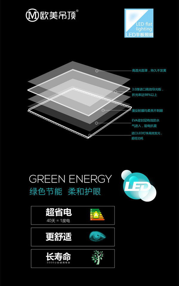 歐美是做光源出身,我們深知一款好的LED平板照明應該具備那些要素: