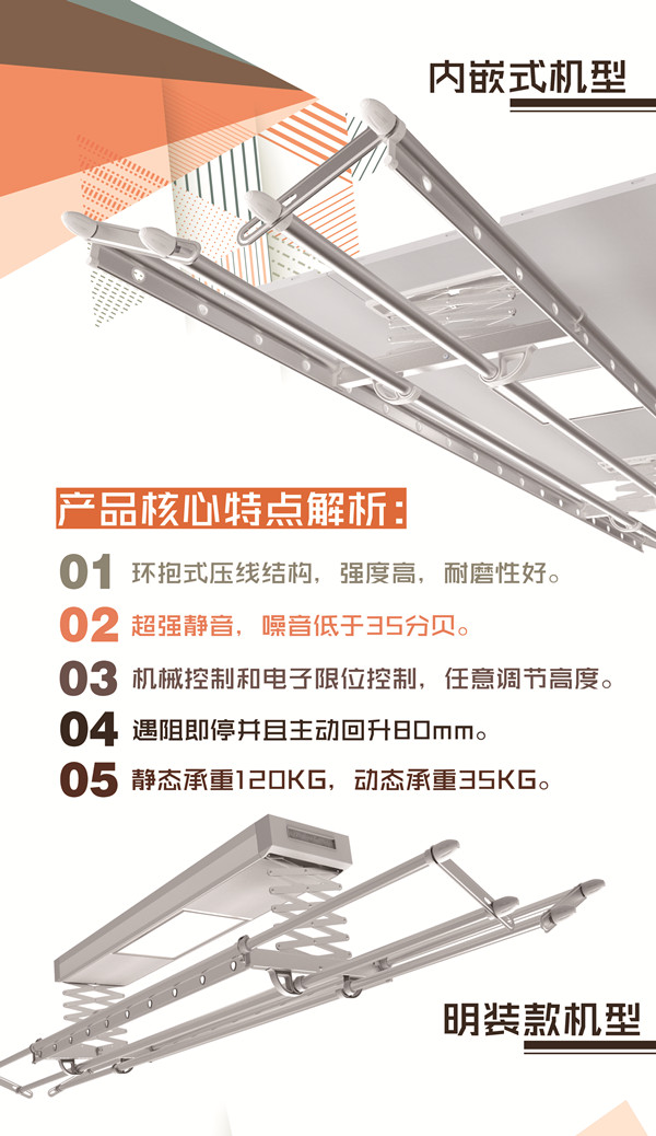 遙控自由升降,滿足不同身高,不同的需求,簡單的操作系統,即便你的父母不識字,也可輕松操作!讓冬衣的晾曬毫不費力!
